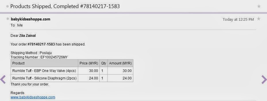 So, since aku nak pakai cepat, aku pun terus beli online. Nama kedai ni Fabulous Mom. Kedai kawan kepada kawan aku. Outlet dia banyak. Kawan aku siap call kan tanya ada stok tak. Bila dia cakap ada je, terus aku purchase.